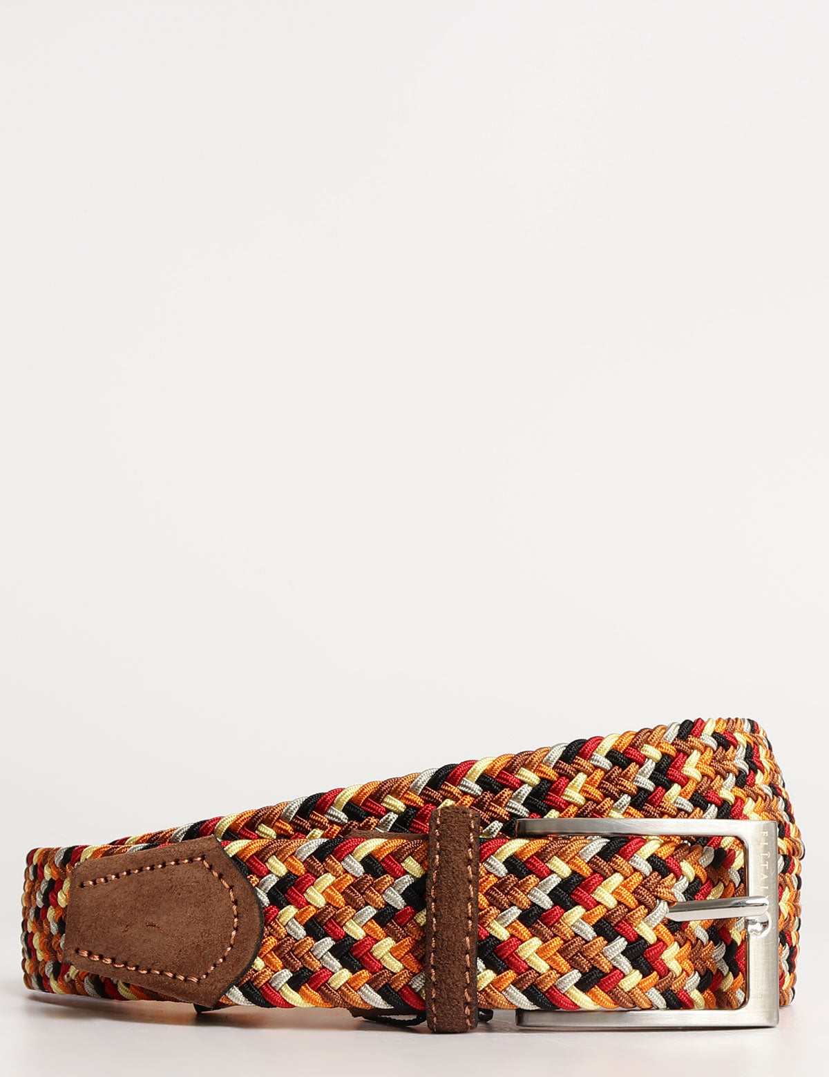 Cintura da uomo Elitaly realizzata in materiale elasticizzato intrecciato, con estremità in pelle scamosciata e fibbia squadrata