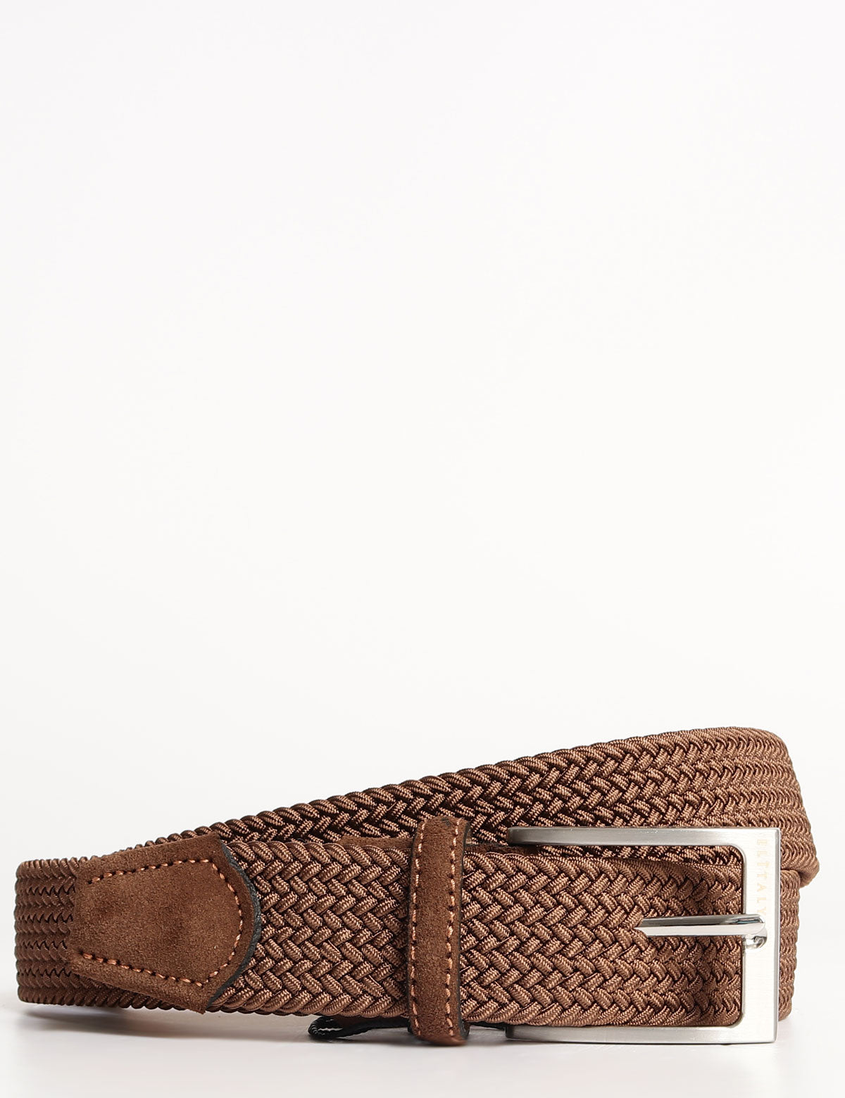 Cintura da uomo Elitaly realizzata in materiale elasticizzato intrecciato, con estremità in pelle scamosciata e fibbia squadrata